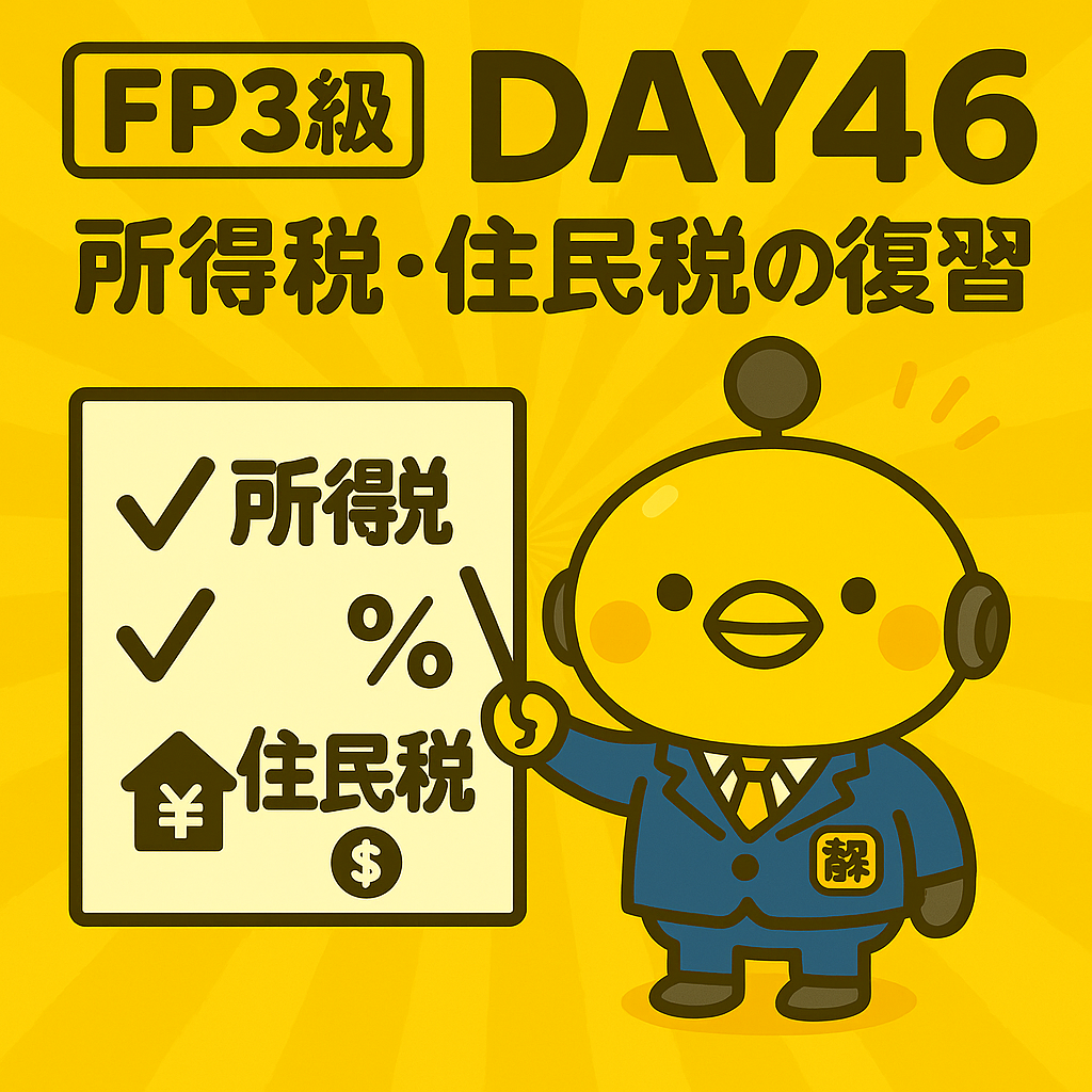 Day22〜Day24で学んだ「所得税・住民税」の内容を振り返り、FP3級試験に直結する出題ポイントを整理します。