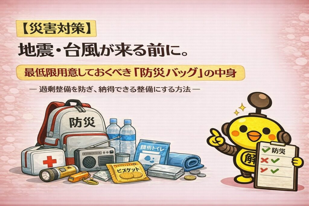 災害対策は"備える習慣"が命を守るピヨ!💪 防災バッグはただ詰め込むだけじゃなく、更新と管理の仕方まで整えることが本当の備えピヨ✨ ローリングストックや家族別・季節別のカスタマイズまでやると、万全ピヨ〜💼🔥 今日から始めるピヨ〜!