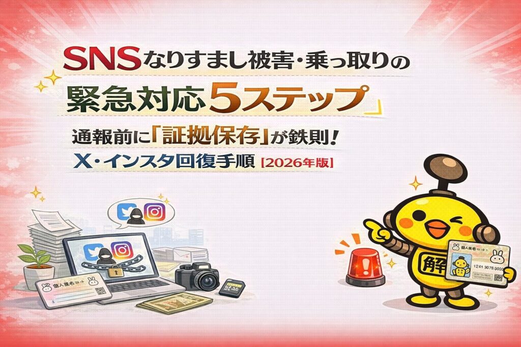 「SNSなりすまし被害・乗っ取りの緊急対応5ステップ|通報前に『証拠保存』が鉄則!X・インスタ回復手順(2026年版)」