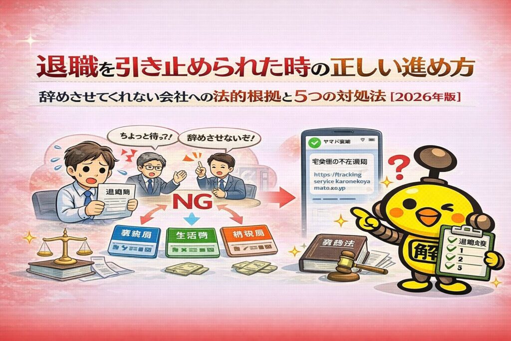 「退職を引き止められた時の正しい進め方|辞めさせてくれない会社への法的根拠と5つの対処法(2026年版)」
