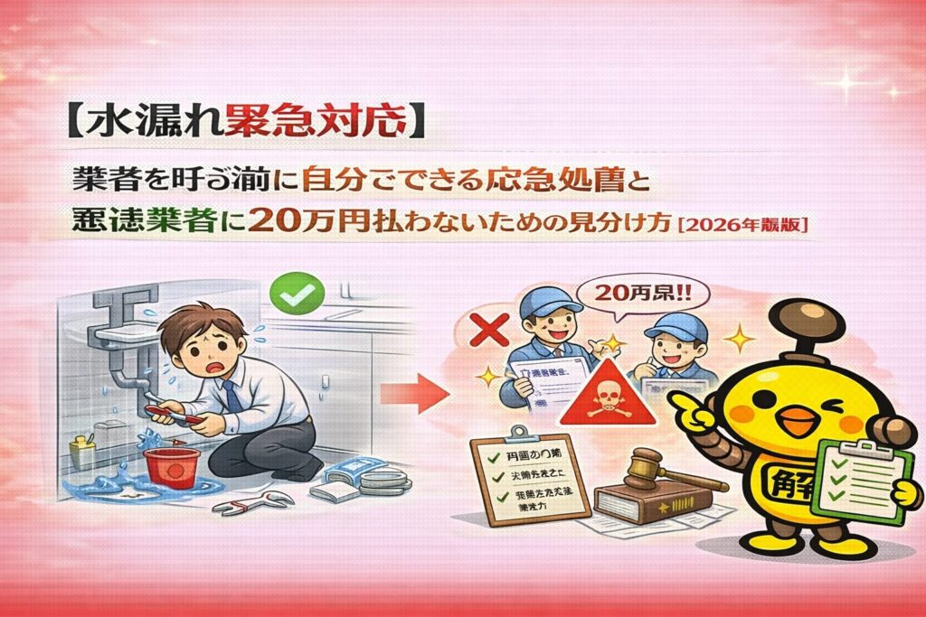 【水漏れ緊急対応】業者を呼ぶ前に自分でできる応急処置と 悪徳業者に20万円払わないための見分け方(2026年最新版)
