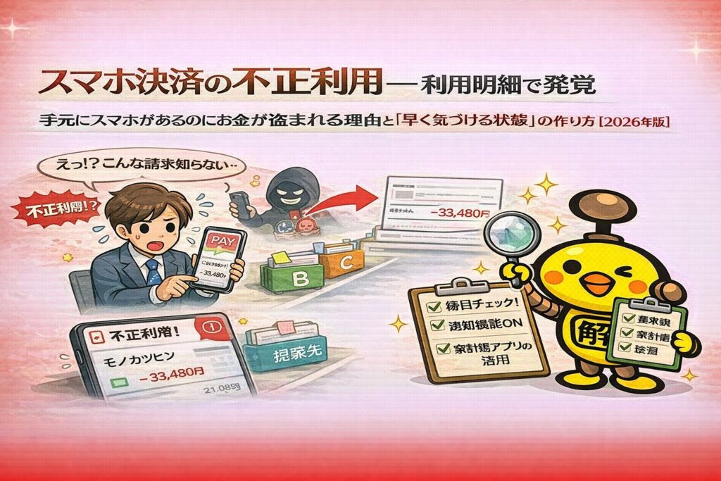 「スマホ決済の不正利用」—利用明細で発覚| 手元にスマホがあるのにお金が盗まれる理由と「早く気づける状態」の作り方(2026年版)