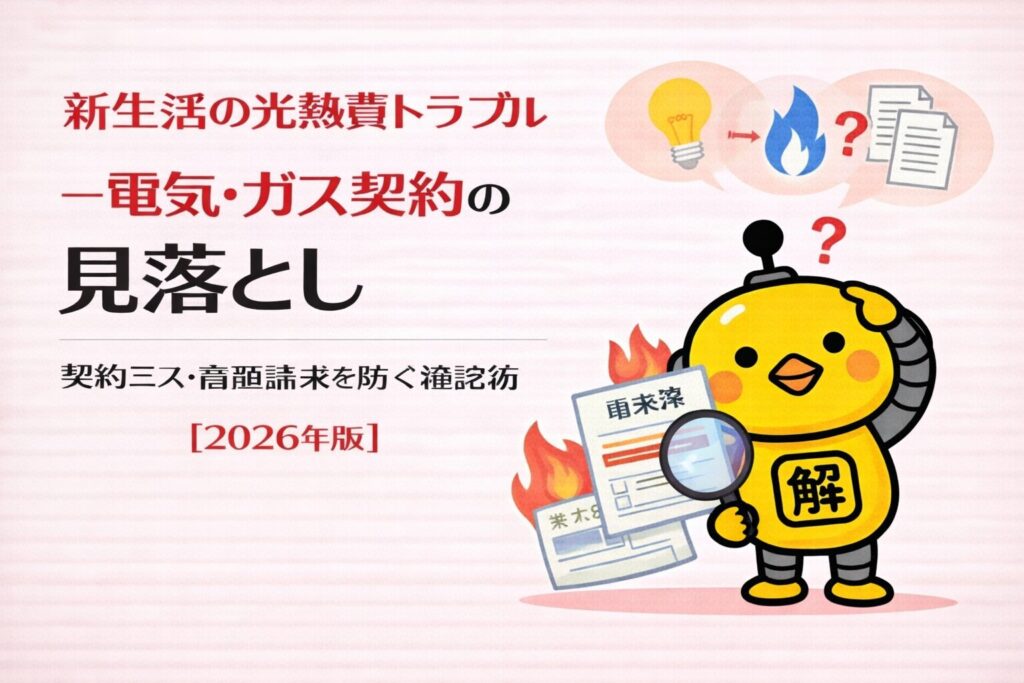 「新生活の光熱費トラブル」—電気・ガス契約の見落とし| 契約ミス・高額請求を防ぐ確認術【2026年版】