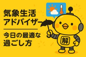 Contents 🌤️ 気象生活アドバイザー - 今日の最適な過ごし方📊 気象データ取得🌅 日の出・日の入り情報🔴 リアルタイム気象情報📈 7日間予報(日の出・日の入り付き)⚡ よくあるシーン(クイック判定)🌤️ 気象生 […]