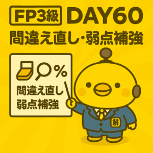 【FP3級 DAY60】間違え直し・弱点補強 総仕上げ!これまでの間違いを徹底分析して弱点を克服しよう Contents 🎯 今日のテーマ✅ 弱点チェックリスト💰 複利計算の復習🏦 相続税基礎控除の復習🏥 高額療養費の復 […]