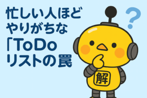 Contents 🕒 リストを書いたのに、達成感がない…ToDoリストが「罠」になる理由と、本当に効く生産性の高め方⚠️ ToDoリストが「罠」になる3つの理由① "無限追加リスト"で自己効力感が下がる② "量"に安心し […]