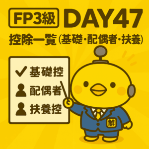 【FP3級 DAY47】控除一覧(基礎・配偶者・扶養)【最新版】 令和7年度税制改正対応!頻出の控除3種を条件・金額まで完全整理! 🎯 今日のテーマ 所得税・住民税の計算に必ず出てくる「控除」。 特に 基礎控除・配偶者控 […]