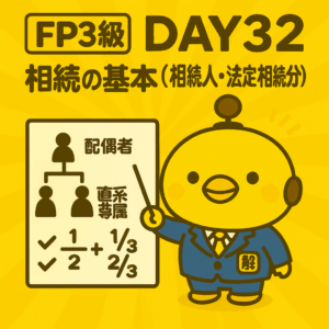 【FP3級 DAY32】相続の基本(相続人・法定相続分) 相続分野の出発点となる超重要テーマを完全理解! 🎯 今日のテーマ 「誰が相続人になるのか?」「どのくらい相続できるのか?」を理解する。 👉 相続分野の出発点となる […]